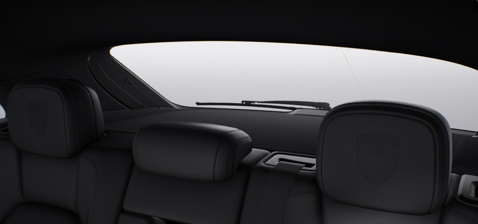 Porsche Crest embossed on headrests front and outer rear seats