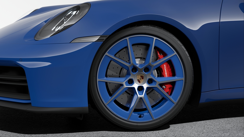 Carrera S alloy wheels with ten spokes with highly polished surfaces and polished outer border.