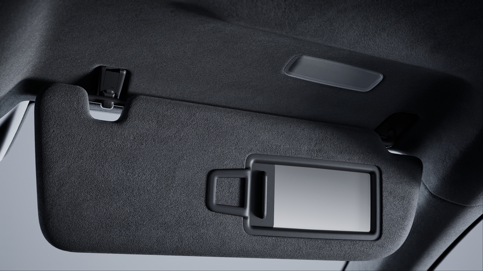 Roof lining, A-pillar trim, B-pillar cover (upper section), C-pillar and sun visors in Race-Tex