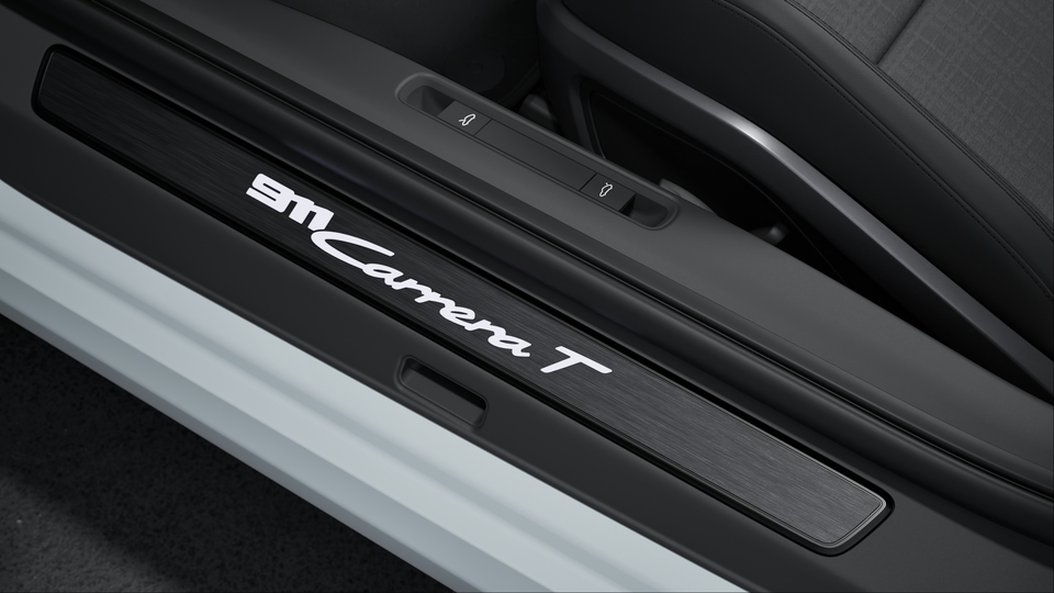 For those who love details: your new 911 Carrera T. The Gentian Blue Metallic 911 makes a true statement with the SportDesign Package painted in Black (high-gloss) and the decorative sticker set in Gentian Blue. In the interior, the Sports Seat Plus Backrests Leather with decorative Inlay painted in Satin Gentian Blue and the 911 Carrera T LED Door Courtesy Lights underline the exclusive appearance. Transform every inch of the road into pure passion with this configuration.