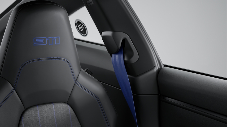Carrera T interior package with extensive items in Black leather, contrasting colour Gentian Blue