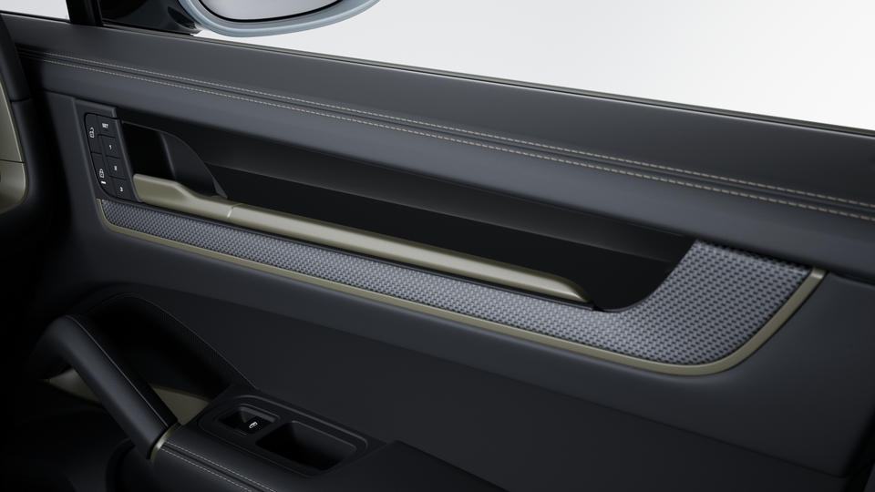 In smooth-finish leather: - front and rear seat centres - front and rear seat inner side bolsters - front and rear headrest centres - armrest and handle in front and rear door panels - armrest centre console front and folding rear armrest - handles in centre console - steering wheel rim - steering wheel airbag module - dashboard upper and lower section including glove compartment cover - door waist rails, upper centre door panel and paneling storage compartment front and rear - side panel centre console
