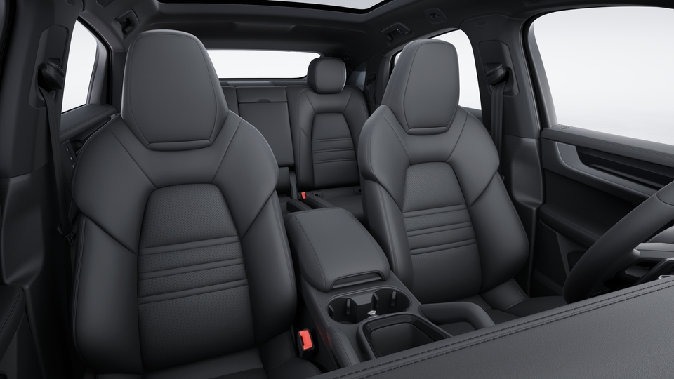 Sporty seat design with integrated headrests in the front, unique seam pattern on the seat centres and elevated side bolsters with: