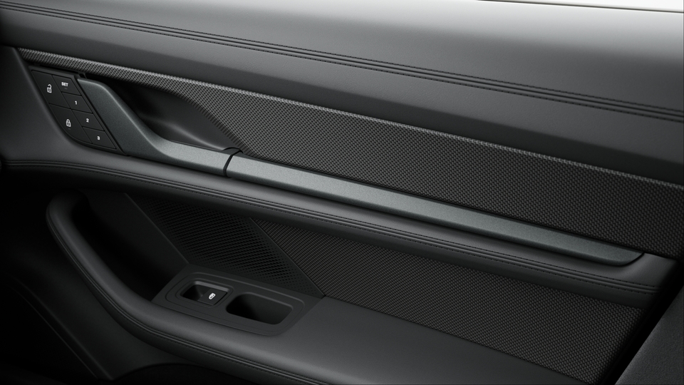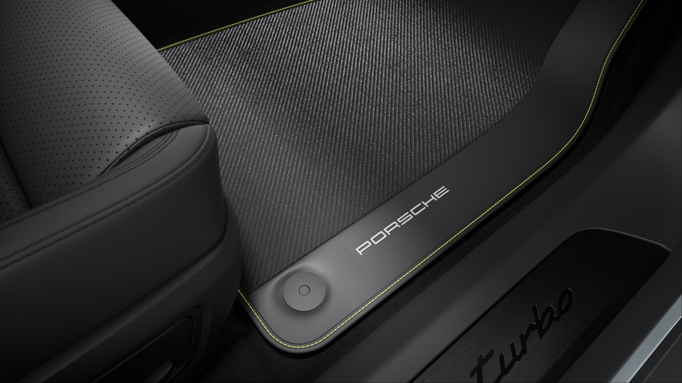 Sports car refined: your new Taycan Turbo. Impressive electric performance meets aesthetics, the SportDesign package and carbon aeroblades, as well as complementary details in the interior, are sure to delight. Contrasting accents, thanks to decorative stitching in Bordeaux Red and the seat centre panel in Crayon, create a special look that you can further customise.