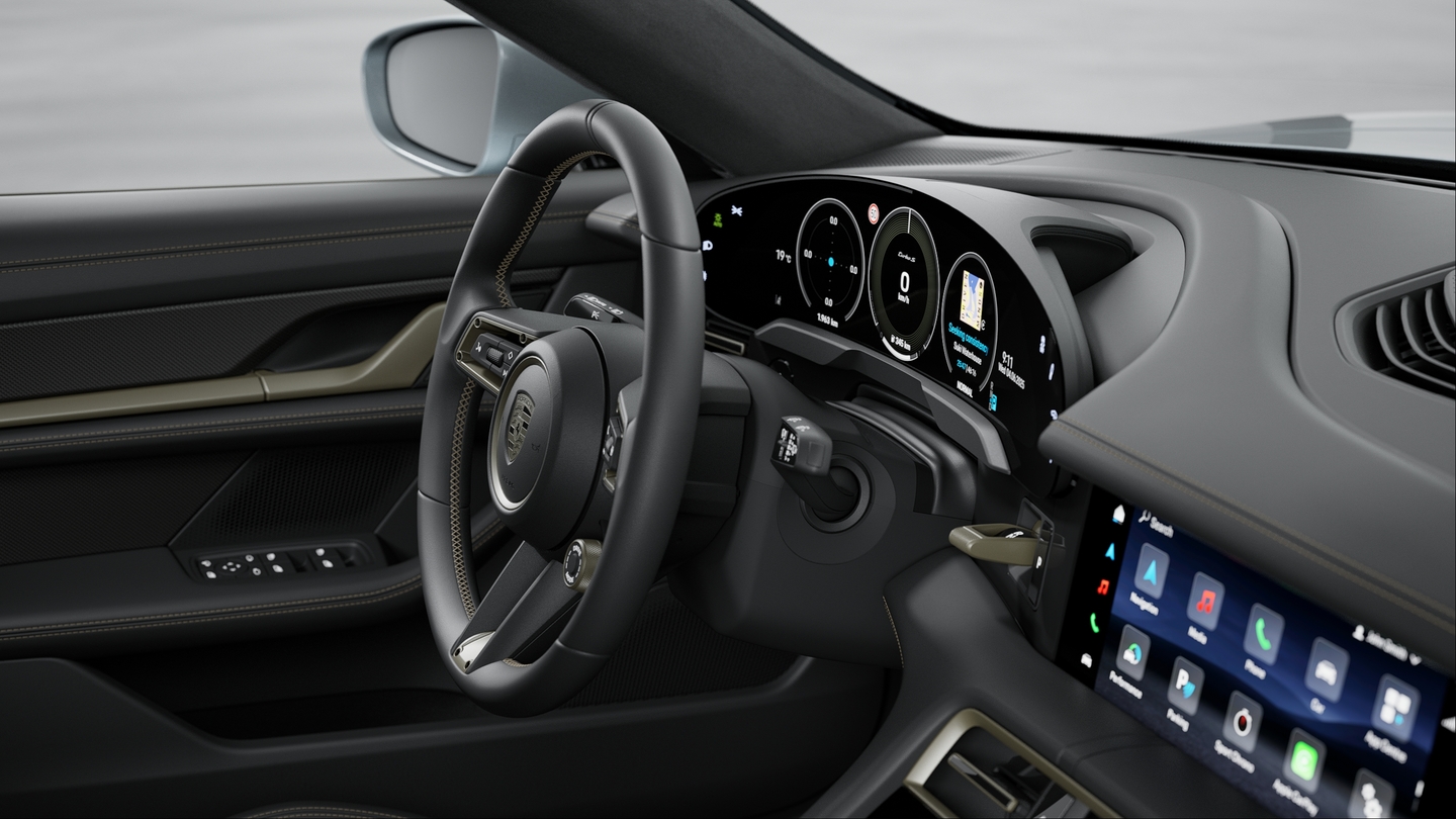 With smooth-finish leather in equipment colour Black: