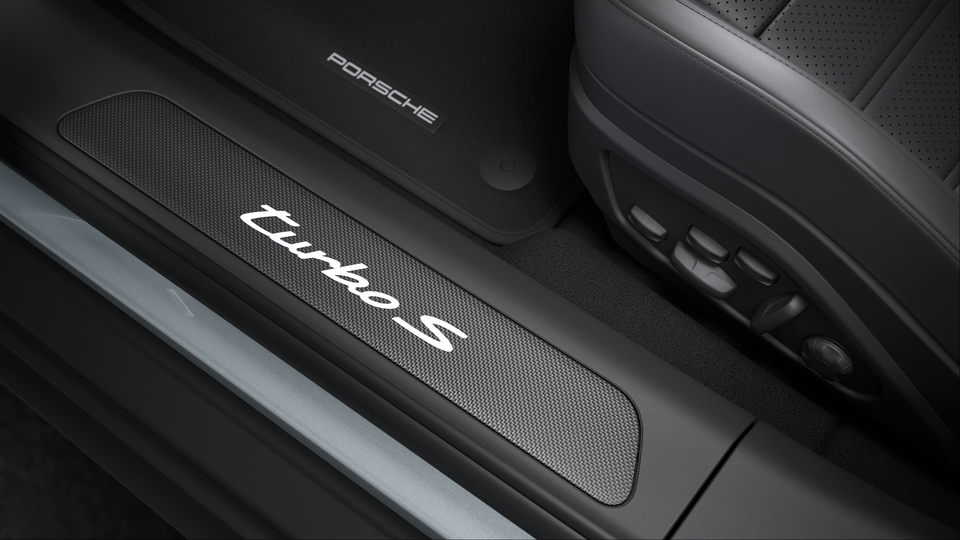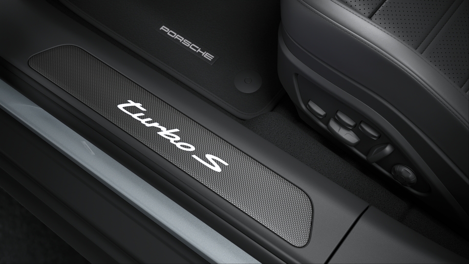 Door sill guards in carbon matt, illuminated (in conjunction with inner door sill guards in leather)