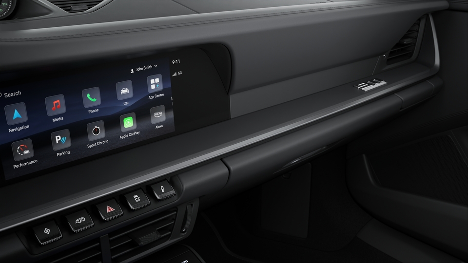 - 仪表板饰条上的银色 “911” 标志