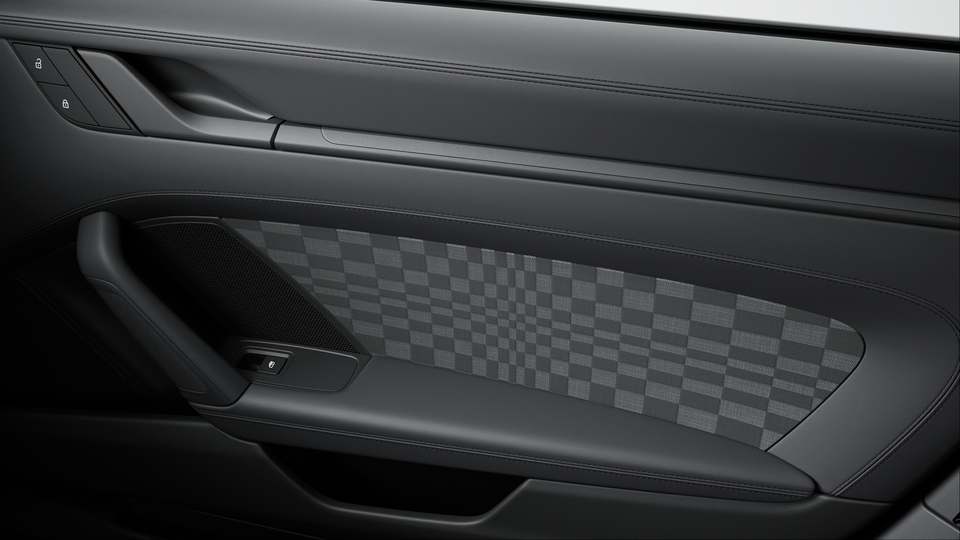 - 储物箱盖上的 “PORSCHE Exclusive Manufaktur” 标志