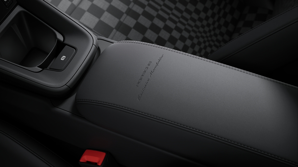 - 储物箱盖上的 “PORSCHE Exclusive Manufaktur” 标志