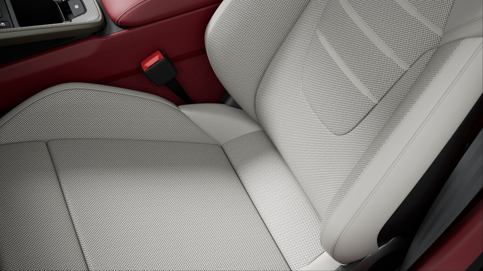 以下真皮部件带有部分对比色装饰缝线:仪表板上部、车门饰件上部、仪表板饰件组件、方向盘、膝盖靠垫、储物箱盖、后排传动轴通道。