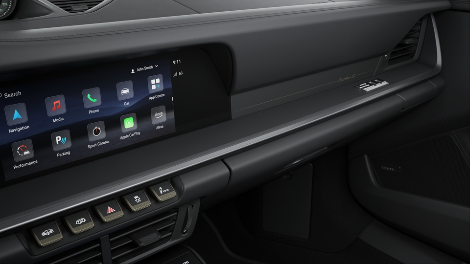 - 储物箱盖上的 “PORSCHE Exclusive Manufaktur” 标志