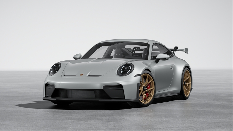 经过重量优化、带中央锁止装置的锻造轻合金车轮,采用一体式造型和银色涂漆,中央锁止装置为黑色 (缎光),包含带 GT3 标志的车轮中心盖以及带中央锁止装置的防盗保护装置