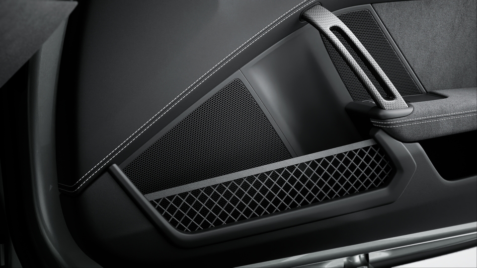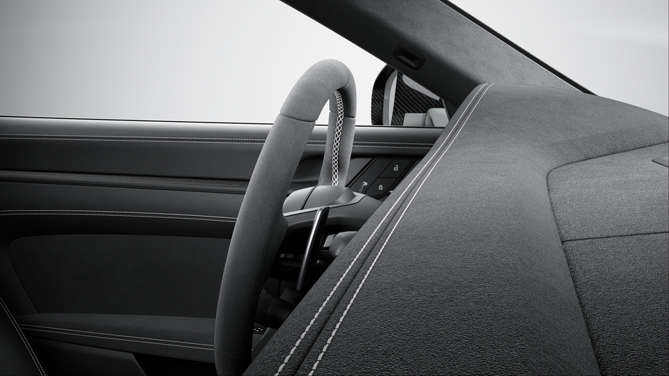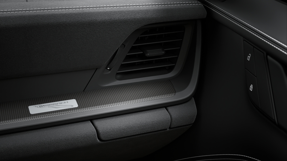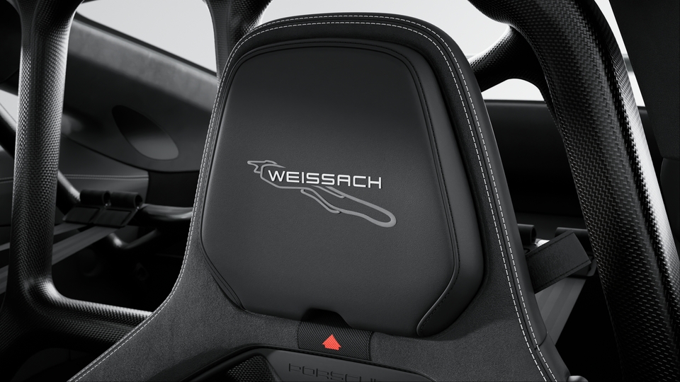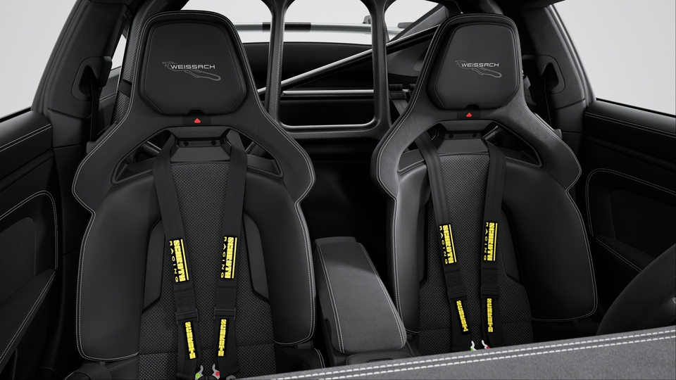 采用碳纤维装饰 (缎纹表面) 的螺栓固定式后防滚架、带碳纤维装饰 (缎纹表面) 车门拉手以及储物网的轻质门板、采用黑色 Race-Tex 面料的换档杆面板上部、带魏斯阿赫组件标志的乘客侧徽章、带刺绣魏斯阿赫组件标志的座椅头枕以及驾驶员和乘客侧的三点式安全带。碳纤维内饰组件。