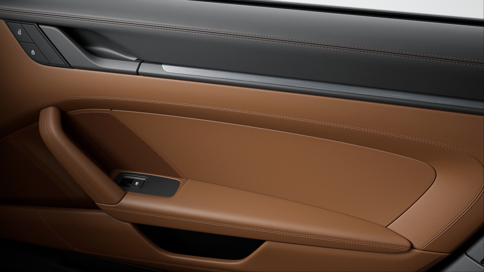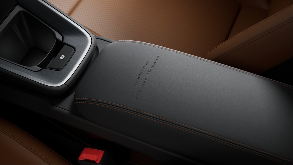 包括以下部件:真皮仪表板饰板组件 (仪表板端部饰件、包括护盖和 Sport Chrono 计时器在内的仪表板上部中央饰板)、真皮车门饰件组件 (车门拉手、门板下部饰件、后侧下部)、座椅头枕上的保时捷盾徽 、储物箱盖上的“Porsche Exclusive Manufaktur”压花、杯座真皮饰件、Race-Tex 面料安全带出口饰件。