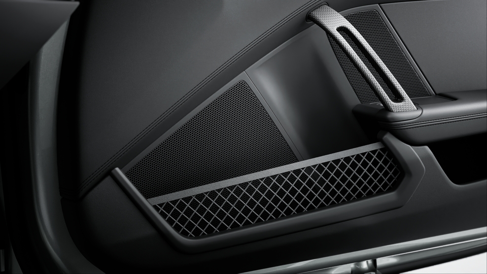 带碳纤维装饰 (缎纹表面) 车门拉手以及储物网的轻质门板。带轻量化组件标志的选档杆前方徽章。碳纤维内饰组件。轻质运动型桶型座椅 (可折叠)
