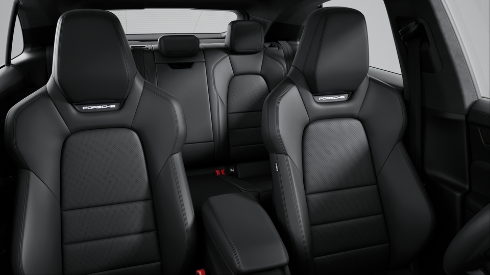 座椅头枕下方的设计面板 (前排座椅) 带白色照明 “PORSCHE” 标志。