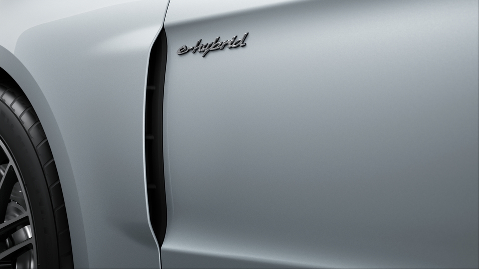- 两侧前车门银色 (高光) “e-hybrid” 标志,带黑色镶边